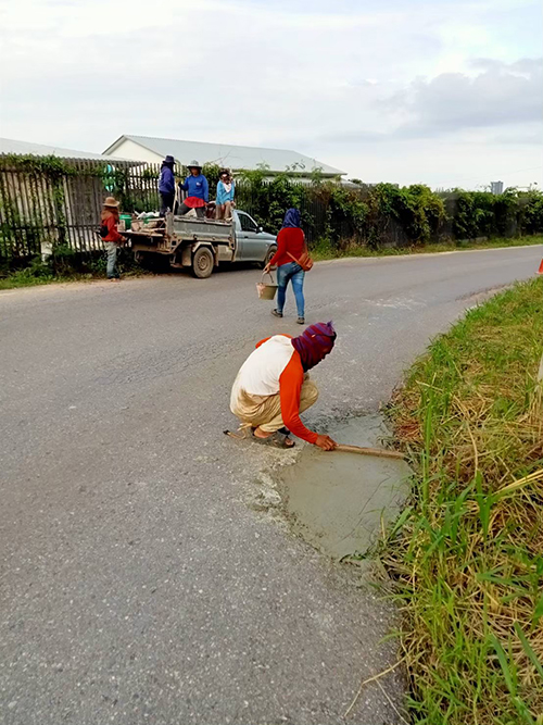 H = Our heart and mind are care the community we fixed the road, cut the grass beside the street, install the Solar cell lighting for public.